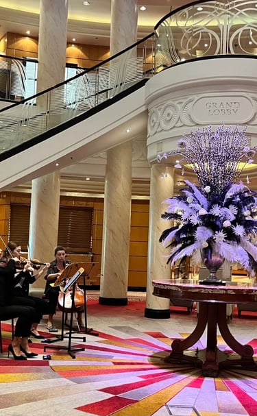 Cunard es menos estilo “parque temático” y más un “centro cultural de lujo flotante”.